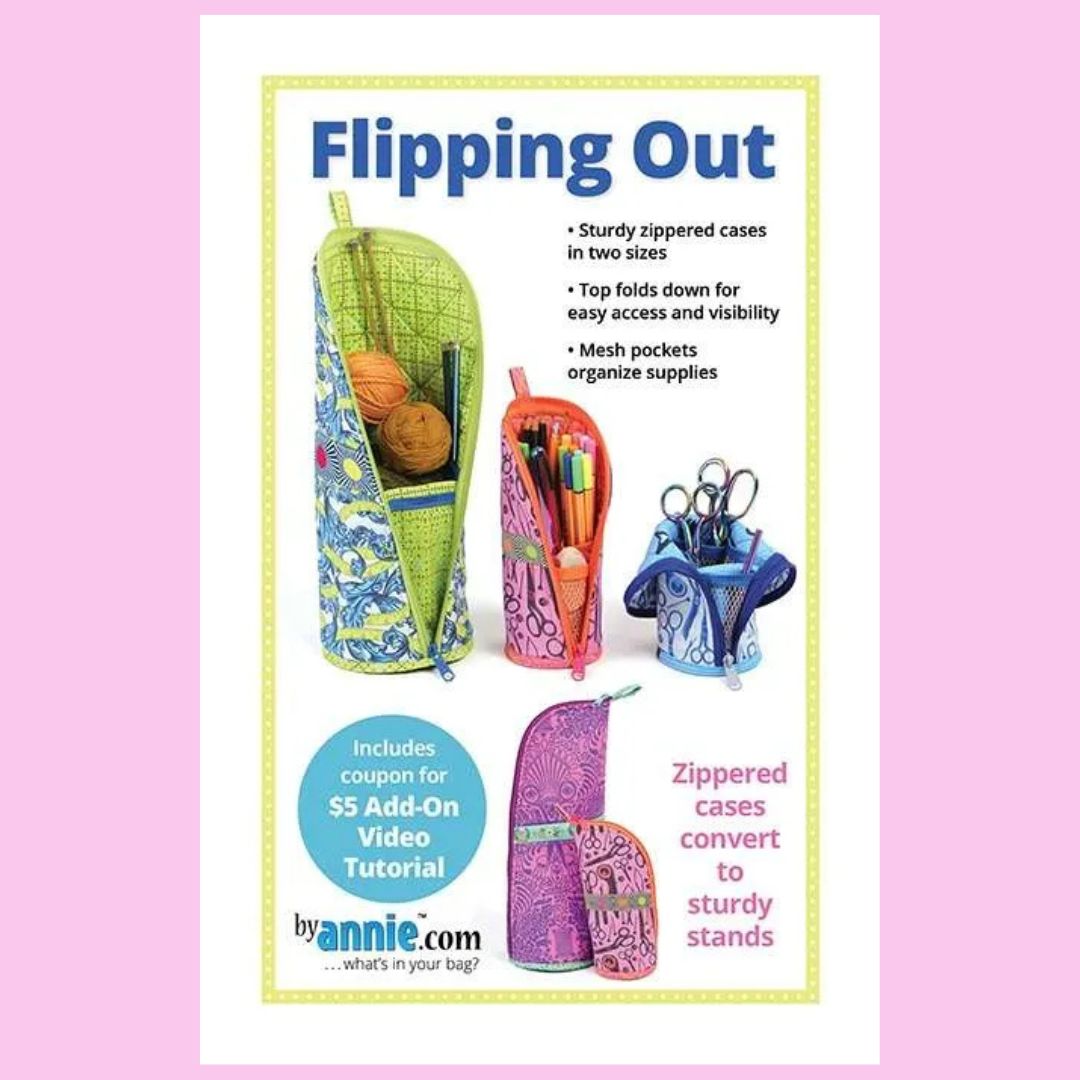 Mesh pockets on the inside help organize supplies. Each case zips shut for safe and secure storage. The outside of either case may be embellished with an optional ribbon border. The pattern includes complete step-by-step instructions for cases in two sizes.