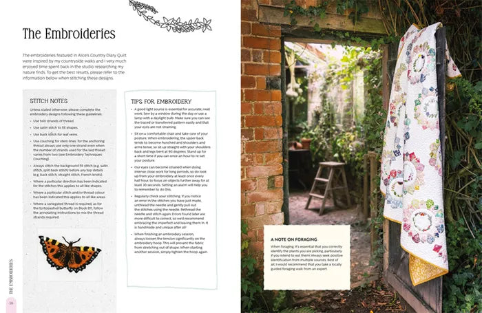 Beyond technique, this book is a work of art in itself, featuring the author's original botanical drawings and plant lore, adding a storytelling element to your crafting journey. Whether you're a seasoned quilter or an embroidery enthusiast, Alice's Country Diary Quilt is an invitation to slow stitching, nature appreciation, and creative expression.