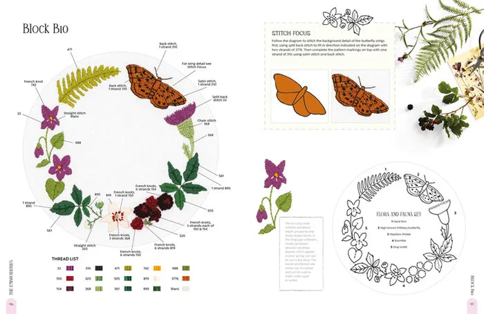 - 9 essential embroidery stitches and 40 DMC thread colours for rich, textural detail