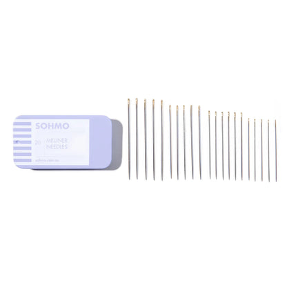 SOHMO Milliner Needles are long, slender needles with round eyes, originally crafted for hat making, pleating and smocking. Their snag-free, sharp points and strong construction make them ideal for a variety of delicate and detailed sewing projects.