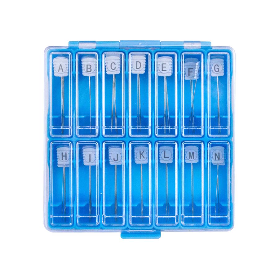 We have combined Taylor Seville Originals Magic Pins' flat, heat resistant comfort grip handle with alphabets, numbers and arrows markings to keep your mist complex quilting and sewing projects organized. The handles on these pins have letters, numbers and arrow symbols.